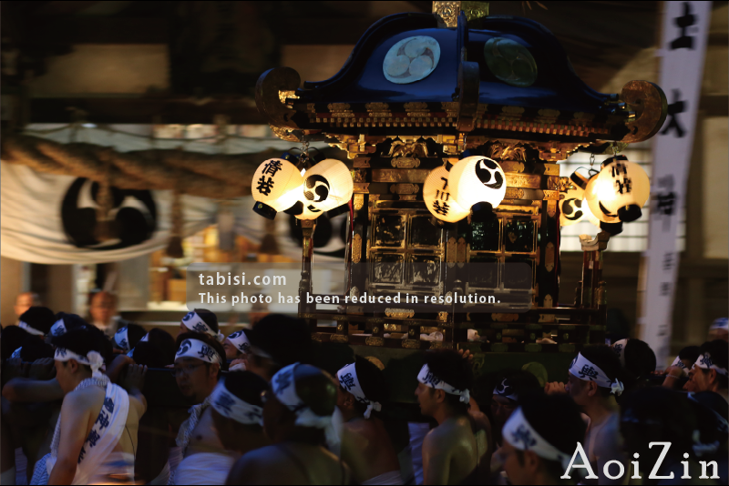 At the shrine's mikoshi festival, a portable shrine weighing about one ton is paraded through the town.