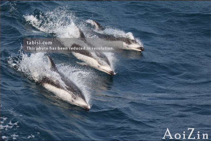 A pacific white-sided dolphin in Mutsu Bay. They were interested in the ferry passengers and approached us.